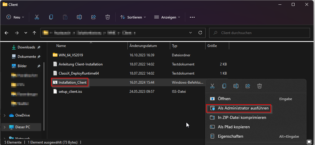 wurden alle Dateien kopiert, wird die "Installation_Client.bat" als Administrator ausgeführt
