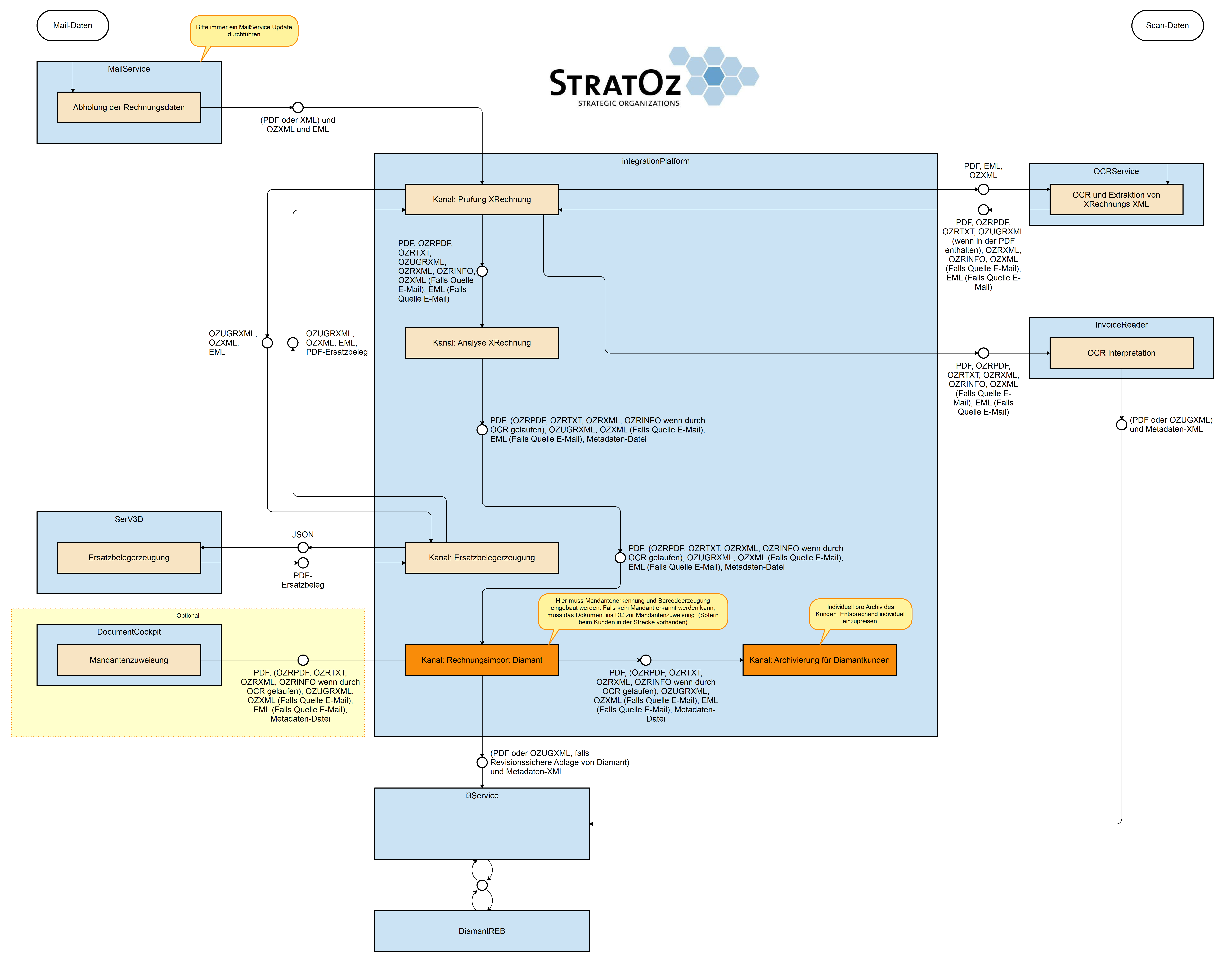 Im Folgenden ist die Lösung für die Verarbeitung von elektronischen Rechnungen (ZUGFeRD und XRechnung) mit oder ohne dem DocCockpit für Diamant beschrieben