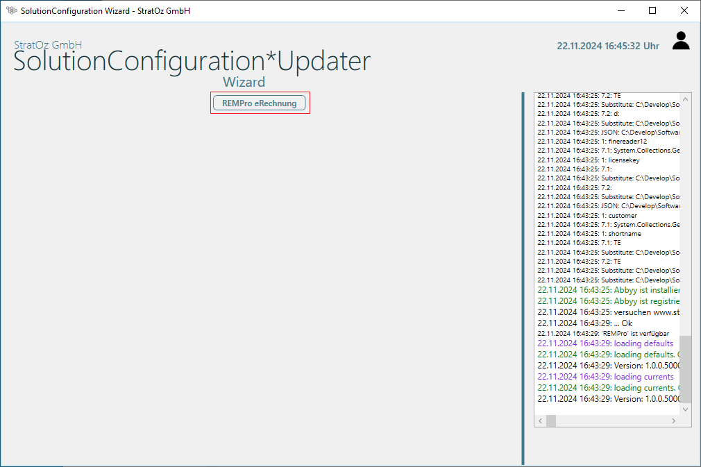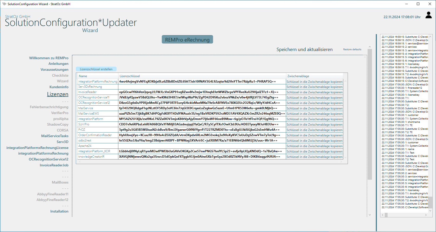 Nachdem die Lizenz eingetragen wurde, sollte sich die Hintergrundfarbe des Eingabefeldes in grün ändern und es erscheint ein Hinweis in der unteren linken Ecke, der bestätigt, dass ein REMPro Modul aktiviert werden kann. Sollte das Eingabefeld "rot" angezeigt werden, prüfen Sie bitte, ob der Lizenzschlüssel korrekt eingetragen wurde und Sie sich auf dem richtigen Server befinden, andernfalls wenden Sie sich bitte an die StratOz GmbH.