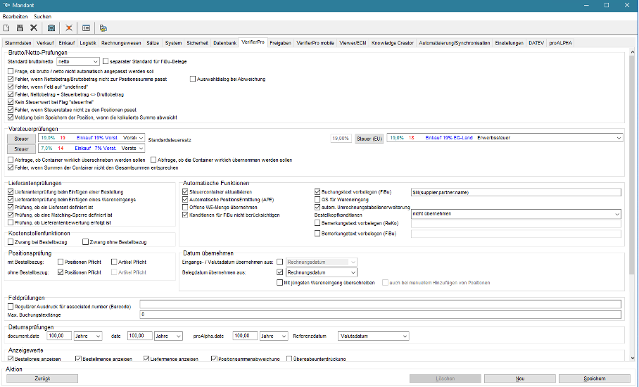 · aktiviert: Aktivierung sorgt für eine automatische Freigabe ohne Prüfung, wenn die Belegprüfung erfolgreich ist.