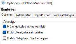 Gehen Sie in die Mandanteneinstellungen und dort in den Reiter VerifierPro. In der Gruppe Anzeigewerte selektieren Sie die Checkbox für "Ersten Beleg autom. öffnen".